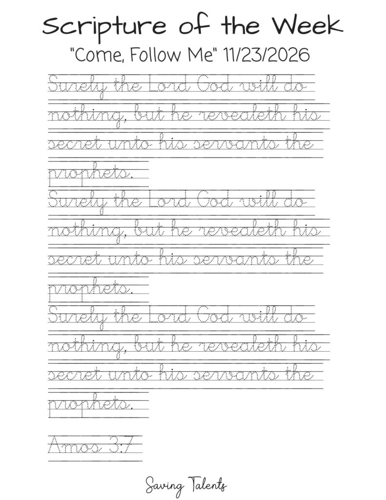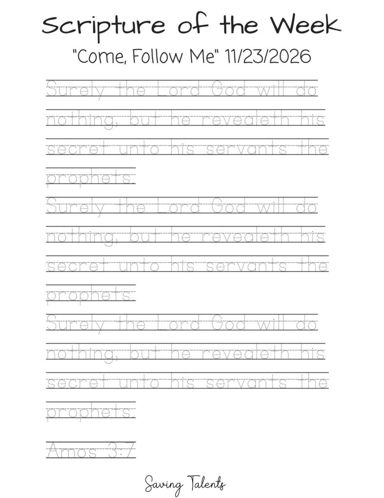 Work on memorizing this scripture with your children during the week for Come Follow Me 11/23: Amos 3:7