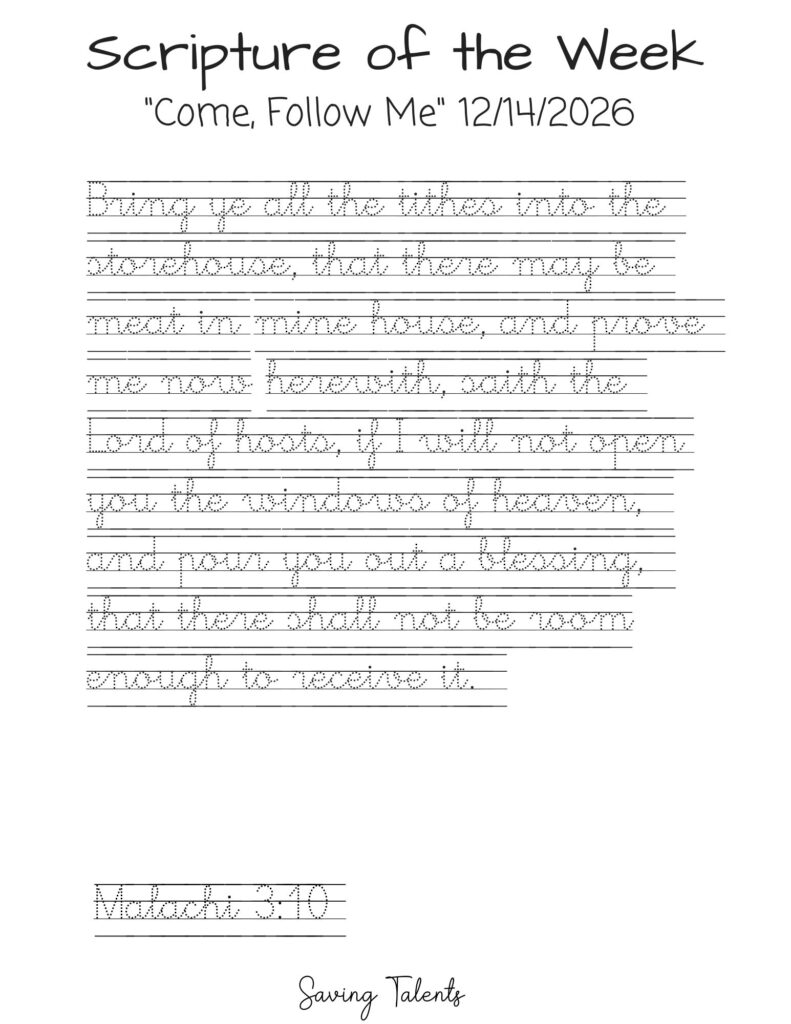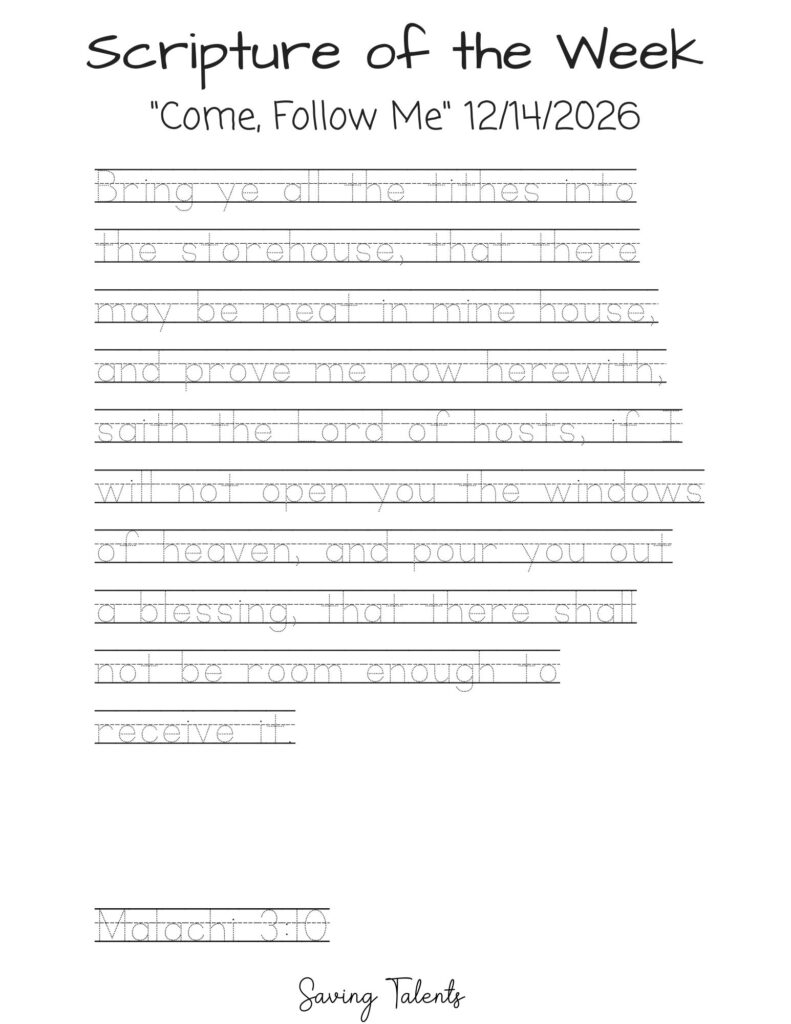 Work on memorizing this scripture with your children during the week for Come Follow Me 12/14: Malachi 3:10