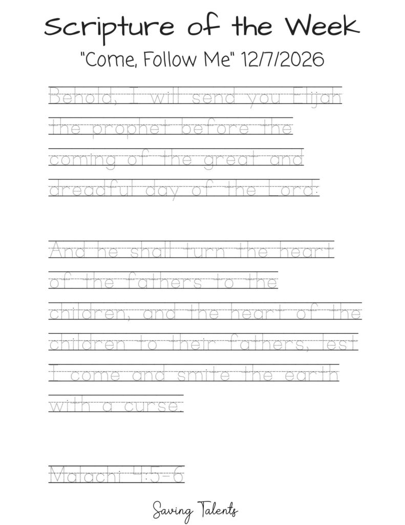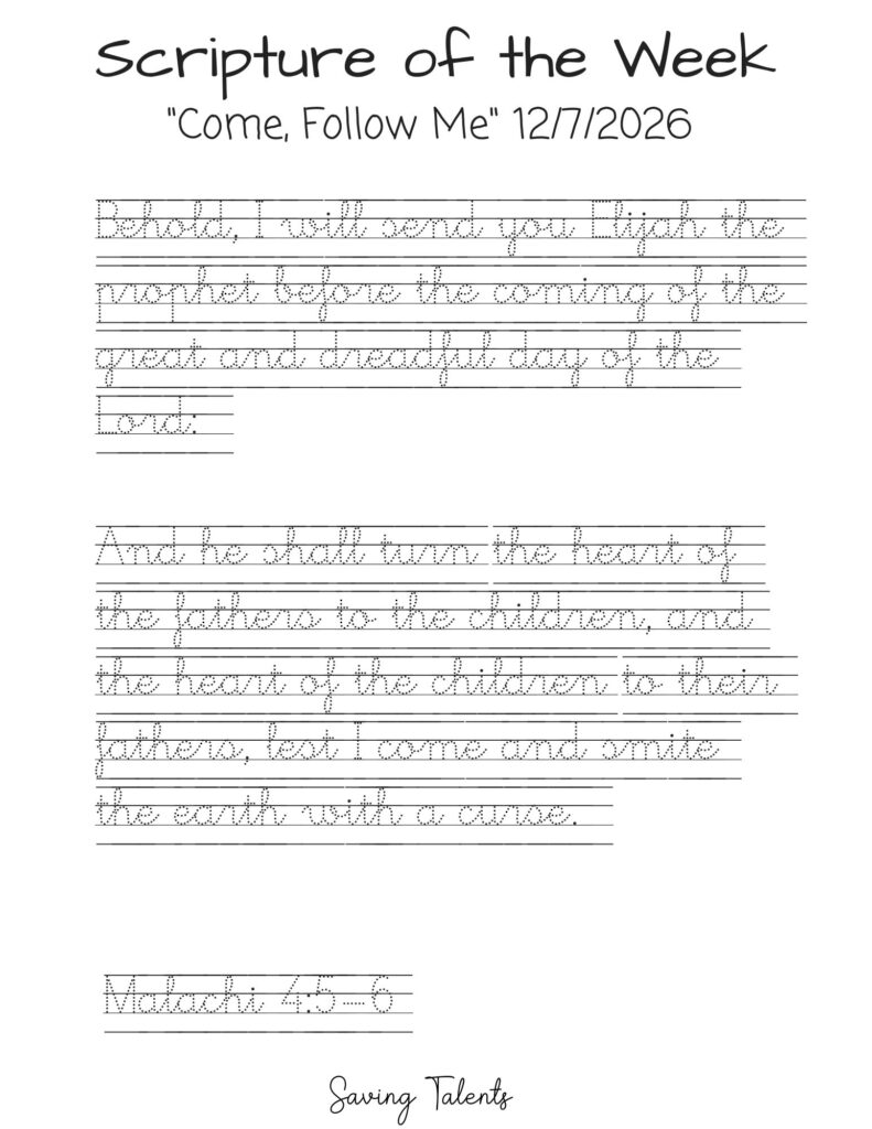 Work on memorizing this scripture with your children during the week for Come Follow Me 12/7: Malachi 4:5–6