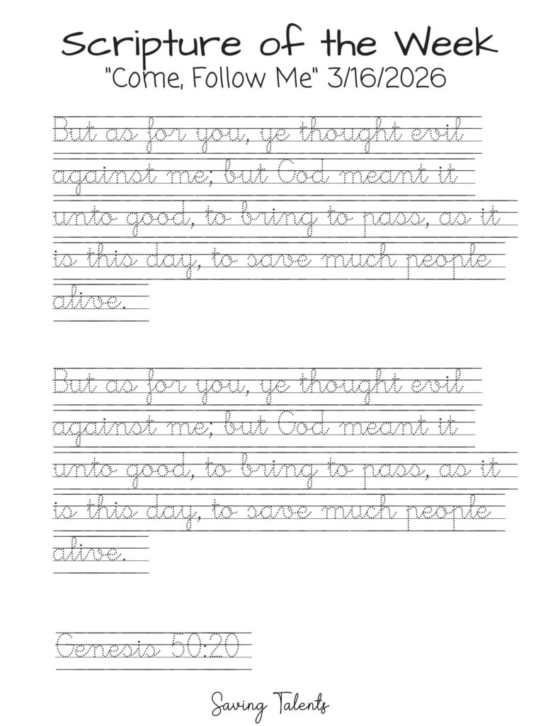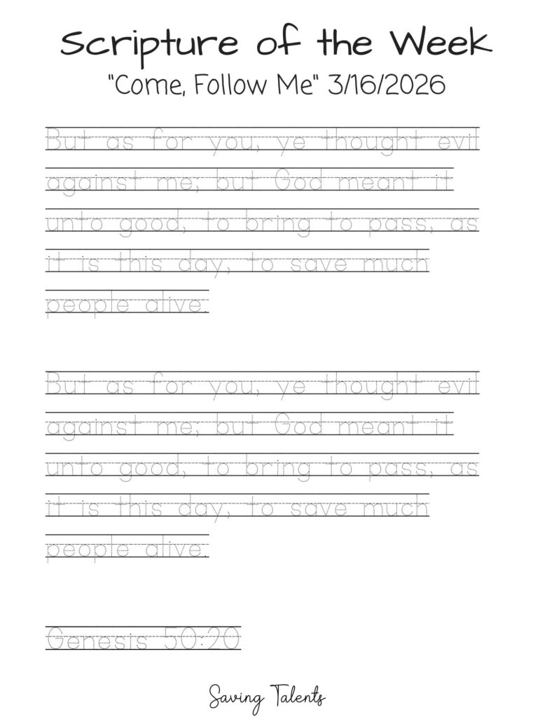 Work on memorizing this scripture with your children during the week for Come Follow Me 3/16: Genesis 50:20
