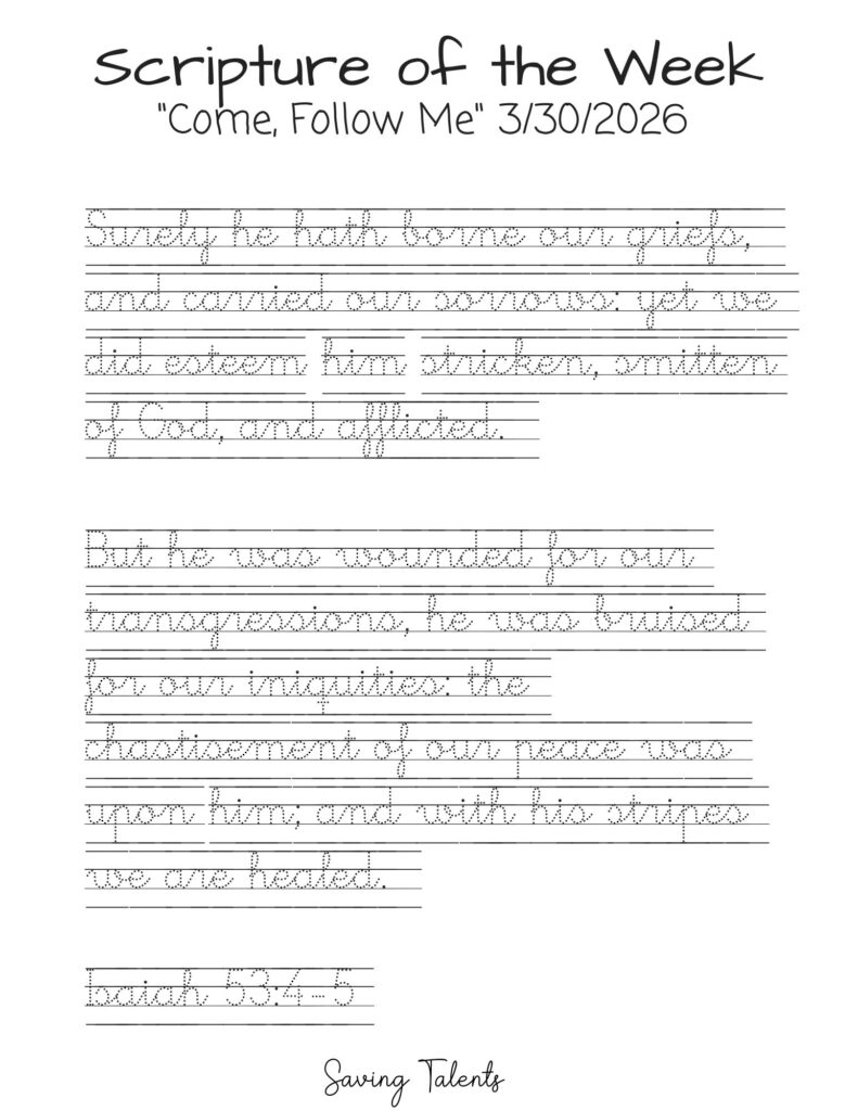 Work on memorizing this scripture with your children during the week for Come Follow Me 3/30: Isaiah 53:3-5