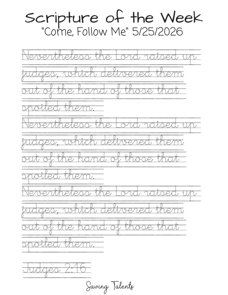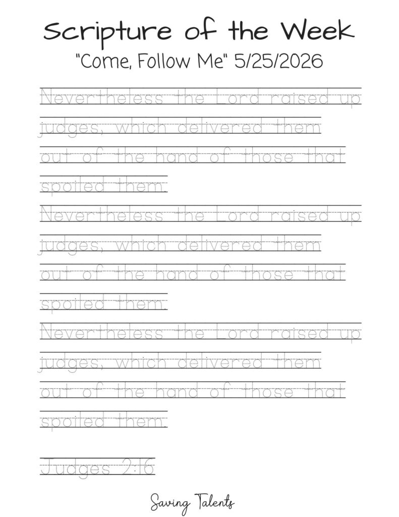 Work on memorizing this scripture with your children during the week for Come Follow Me 5/25: Judges 2:16