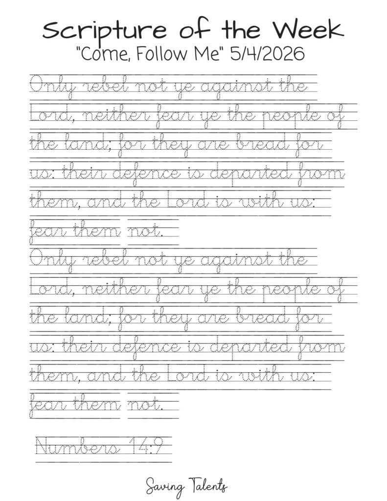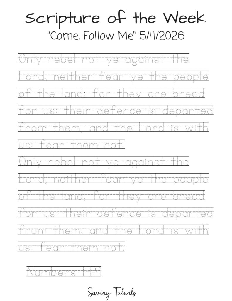Work on memorizing this scripture with your children during the week for Come Follow Me 5/4: Numbers 14:9