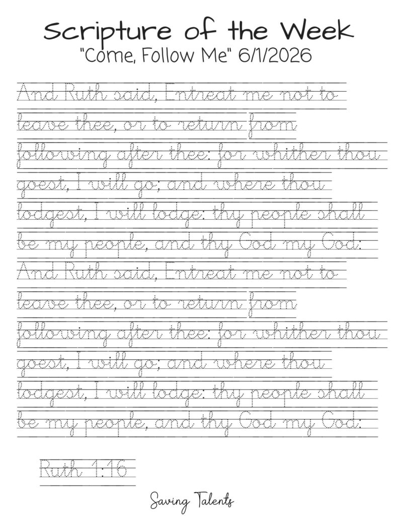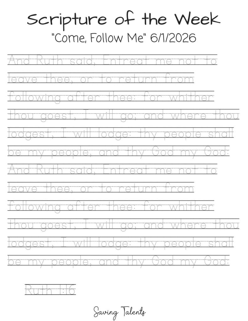Work on memorizing this scripture with your children during the week for Come Follow Me 6/1: Ruth 1:16