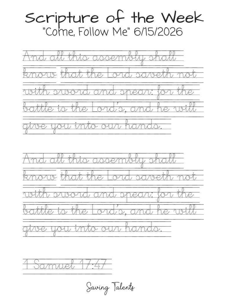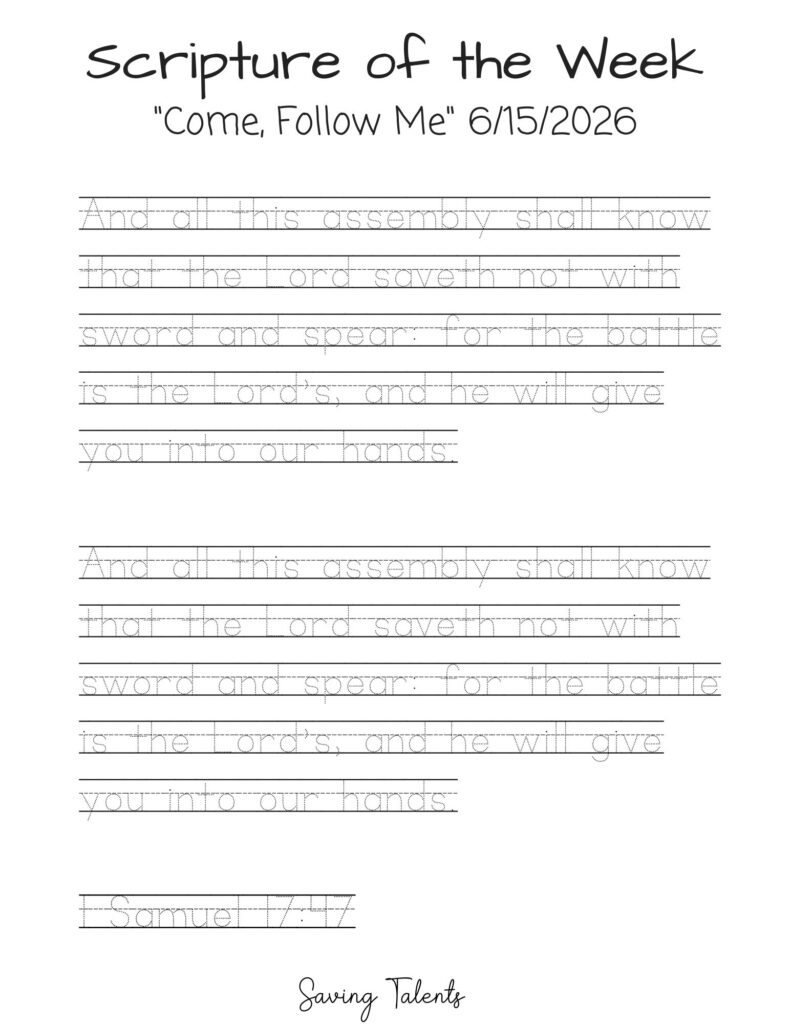 Work on memorizing this scripture with your children during the week for Come Follow Me 6/15: 1 Samuel 17:47