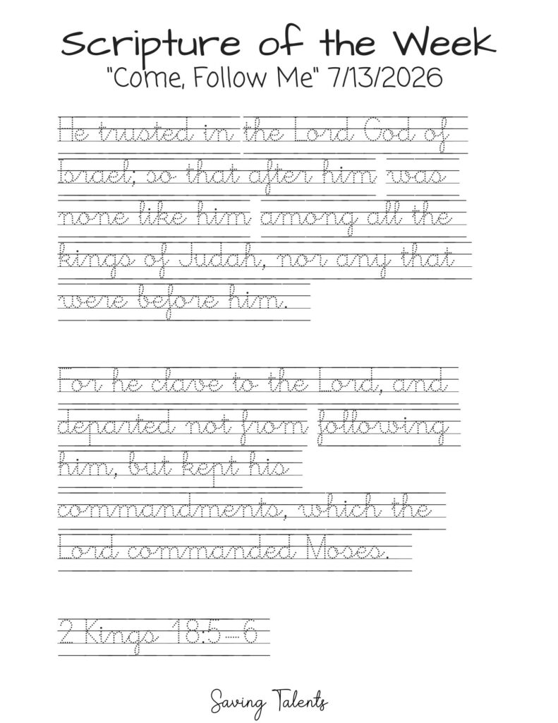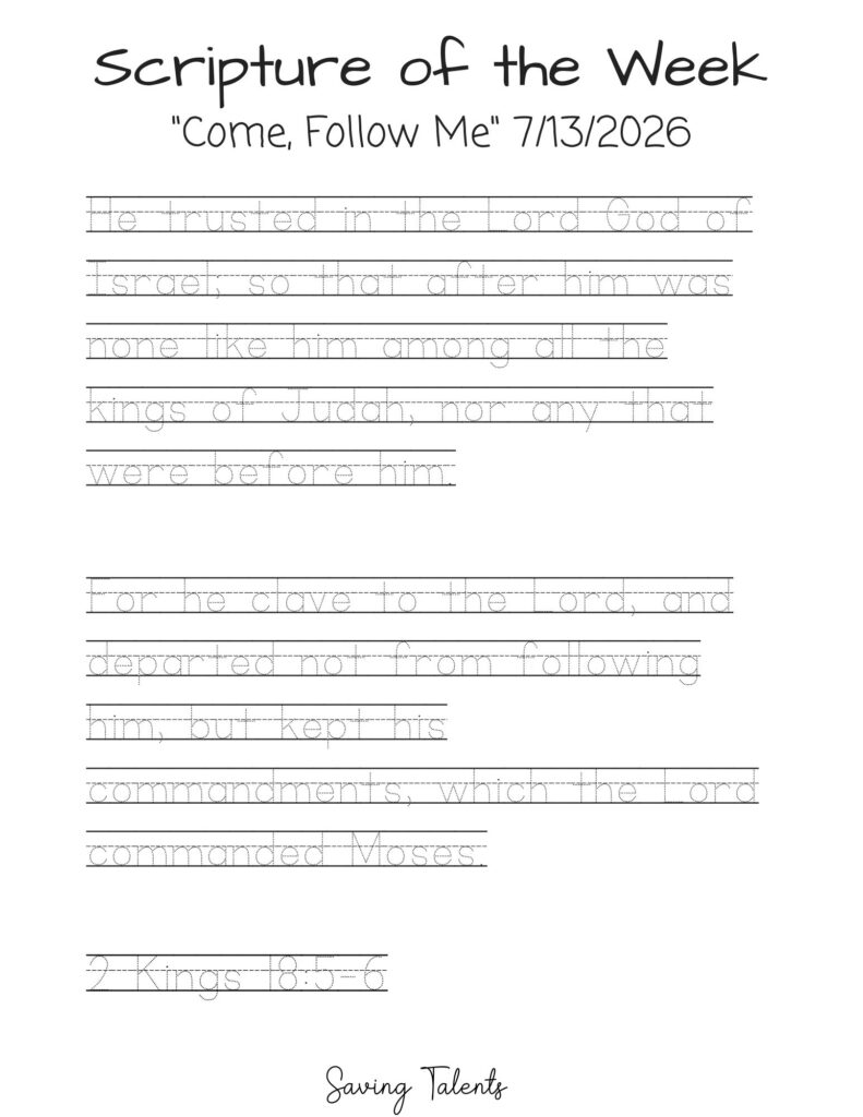 Work on memorizing this scripture with your children during the week for Come Follow Me 7/13: 2 Kings 18:5–6