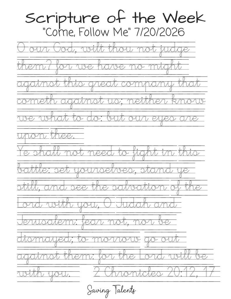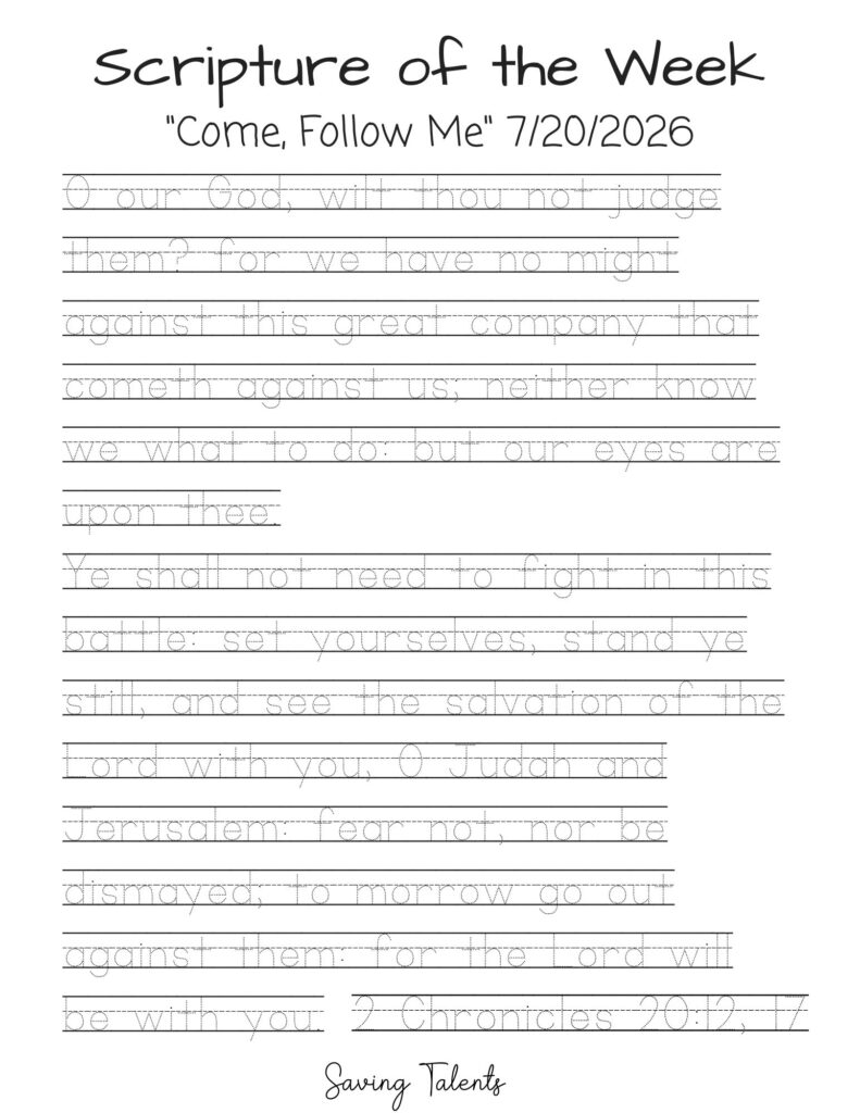 Work on memorizing this scripture with your children during the week for Come Follow Me 7/20: 2 Chronicles 20:12, 17