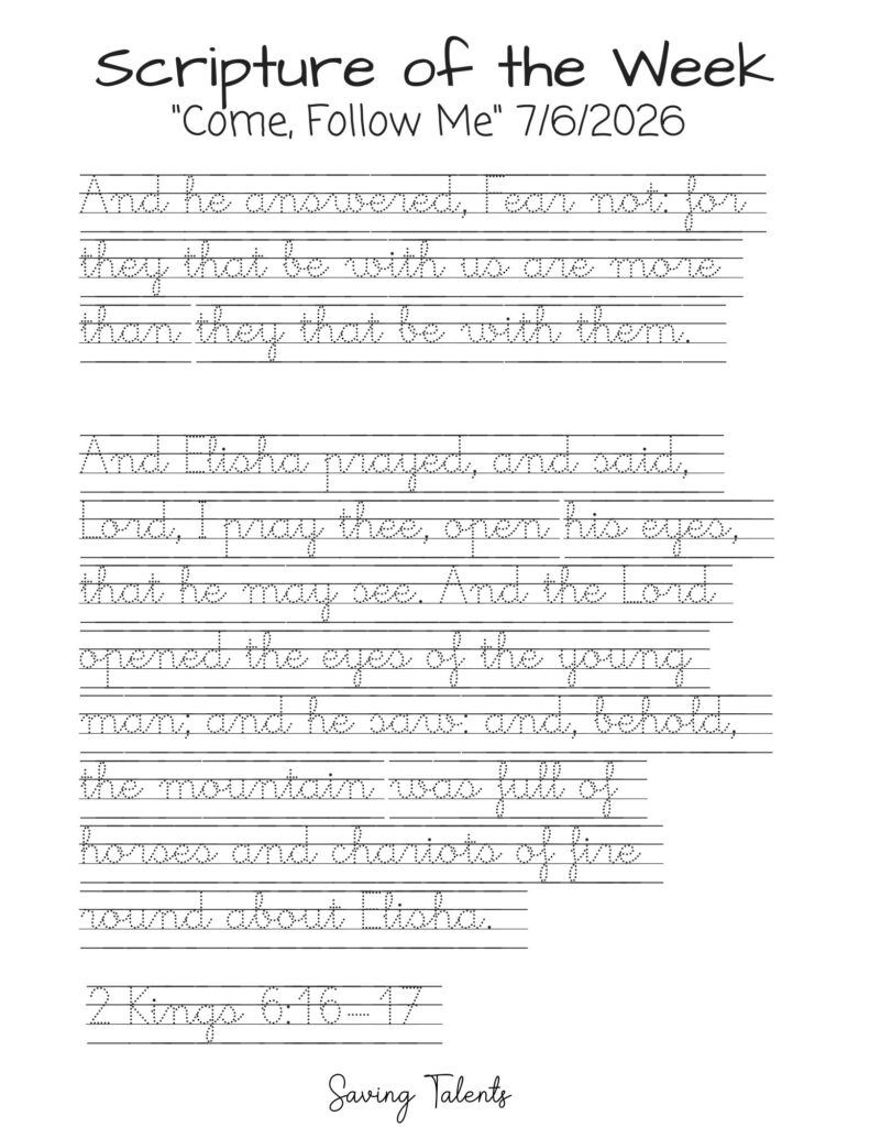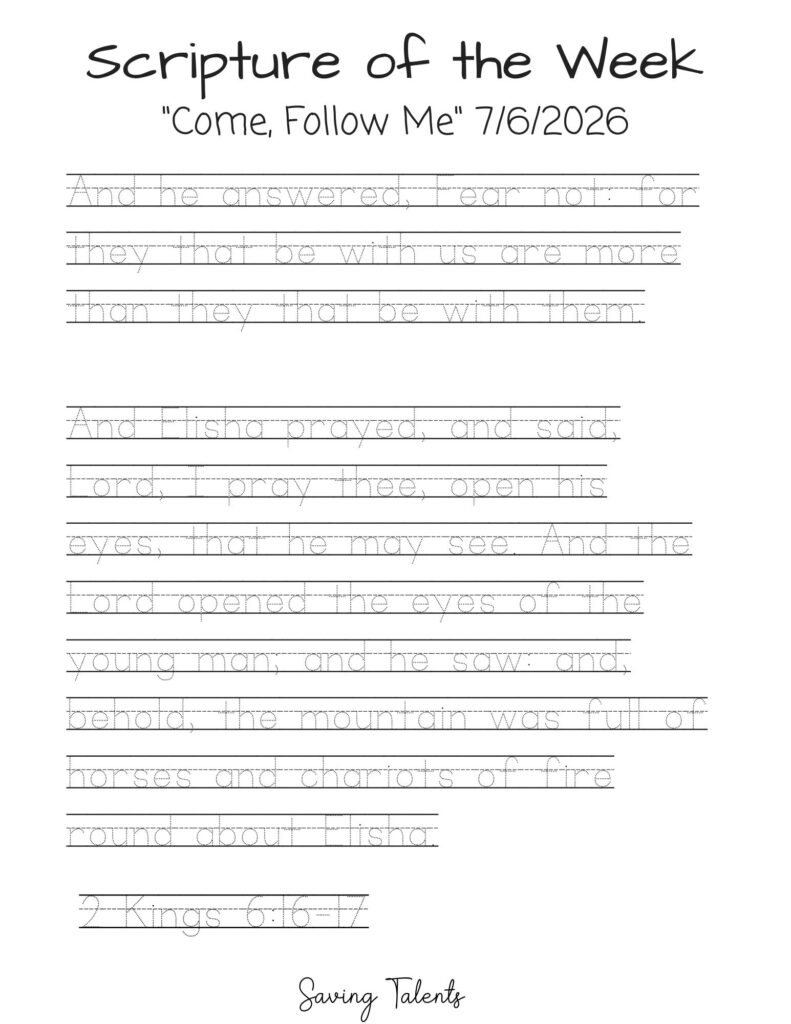 Work on memorizing this scripture with your children during the week for Come Follow Me 7/6: 2 Kings 6:16–17