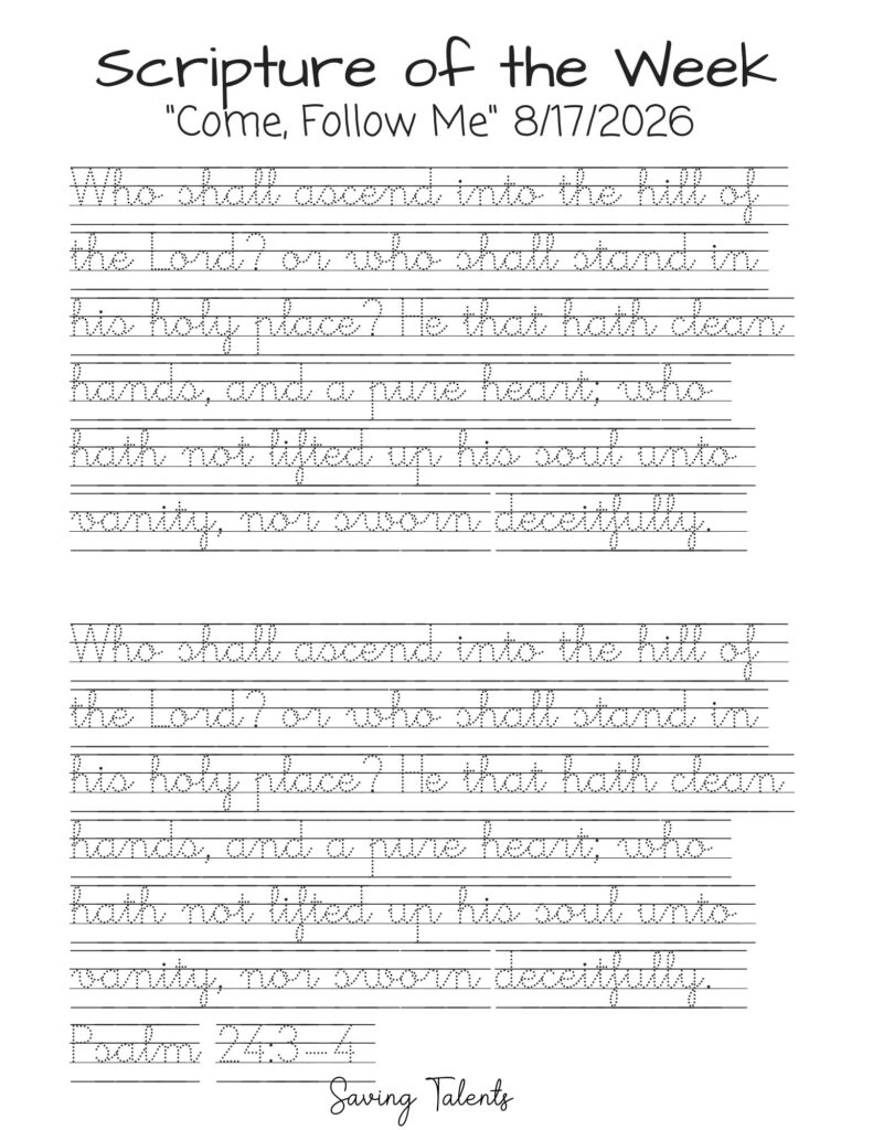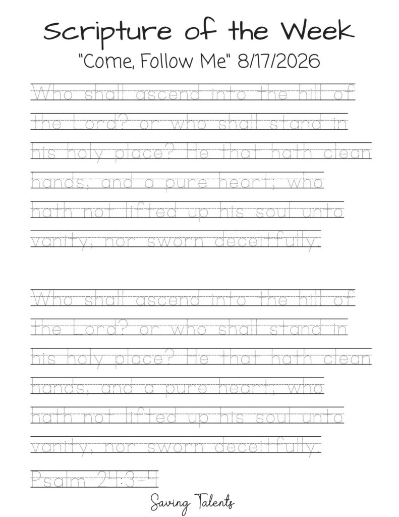 Work on memorizing this scripture with your children during the week for Come Follow Me 8/17: Psalm 24:3–4
