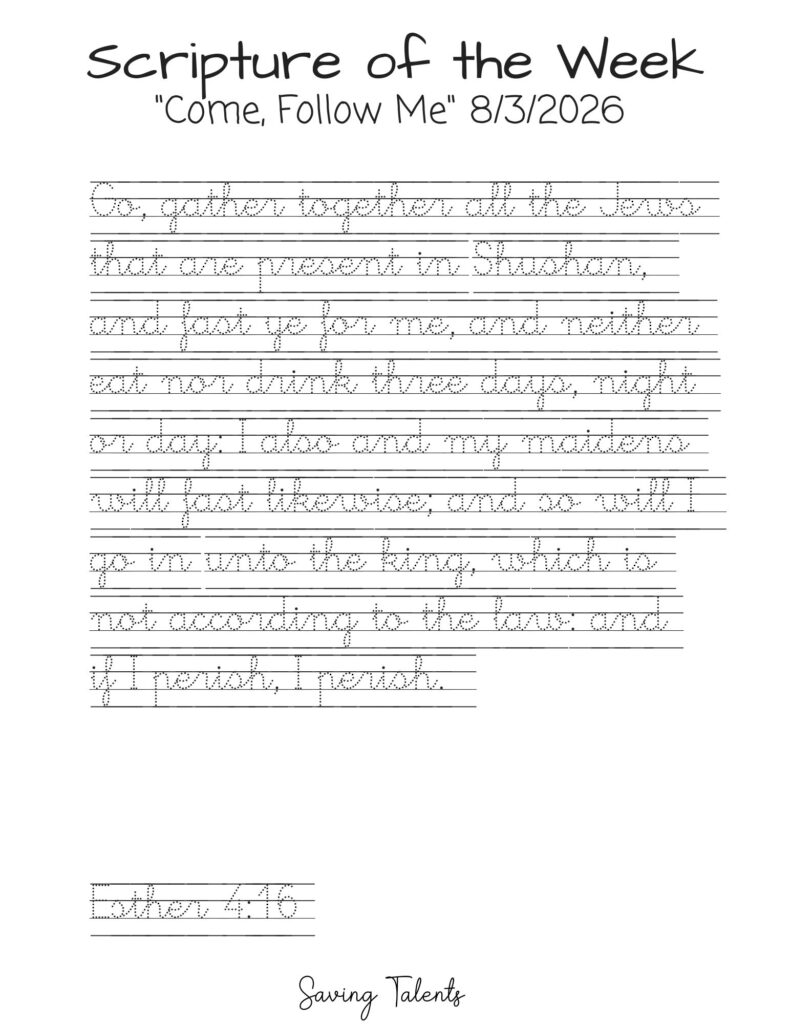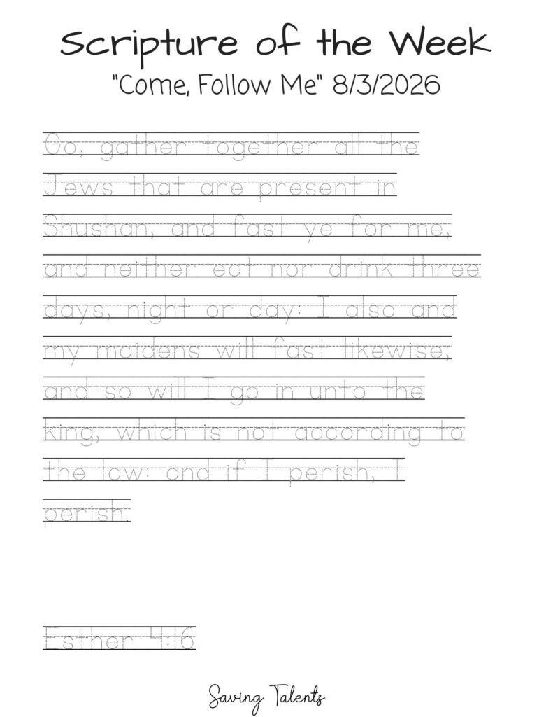 Work on memorizing this scripture with your children during the week for Come Follow Me 8/3: Esther 4:16
