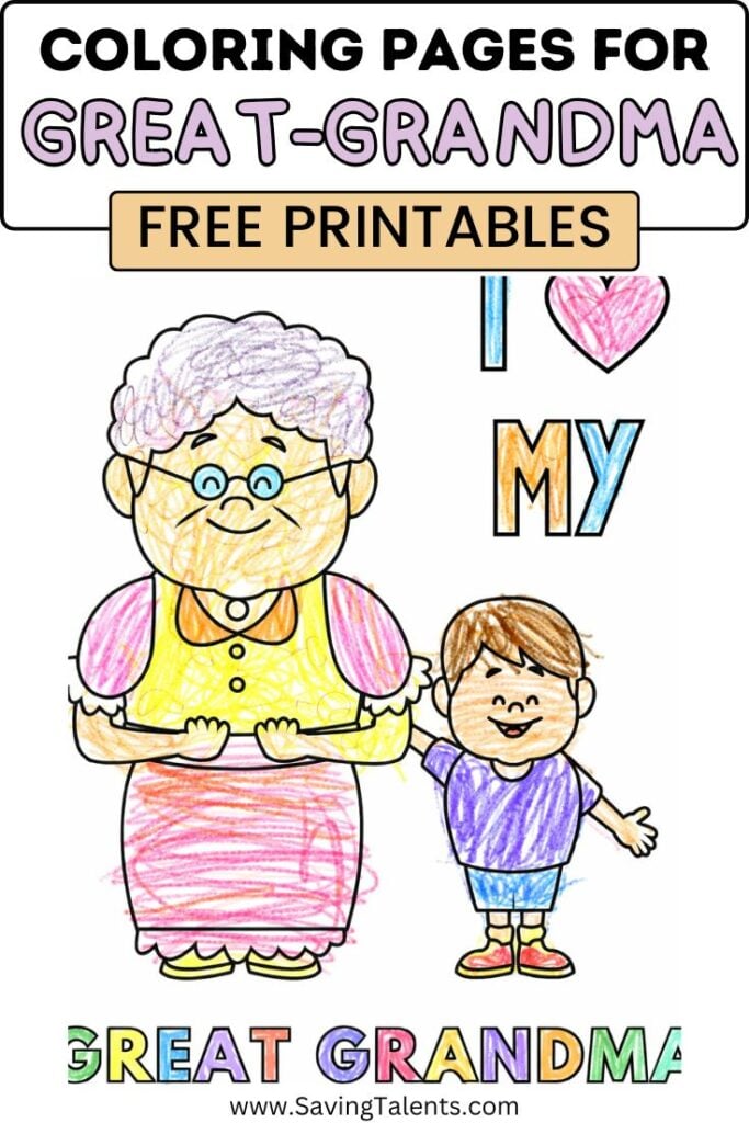 Share these free printable great grandma coloring pages on Pinterest or other social media.